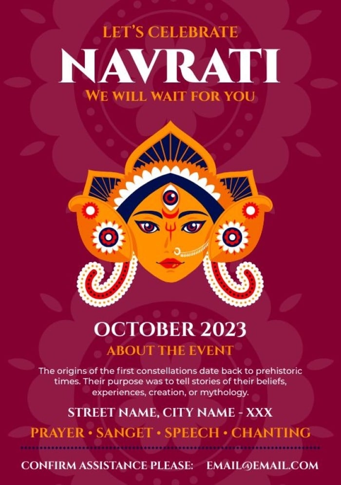 These templates are easy to use and can be personalized with your own text and images. You can add a touch of creativity by including festive elements like diyas, lotus flowers, or traditional patterns. With the right template, you can set the tone for your Navratri event and make a lasting impression on your guests.