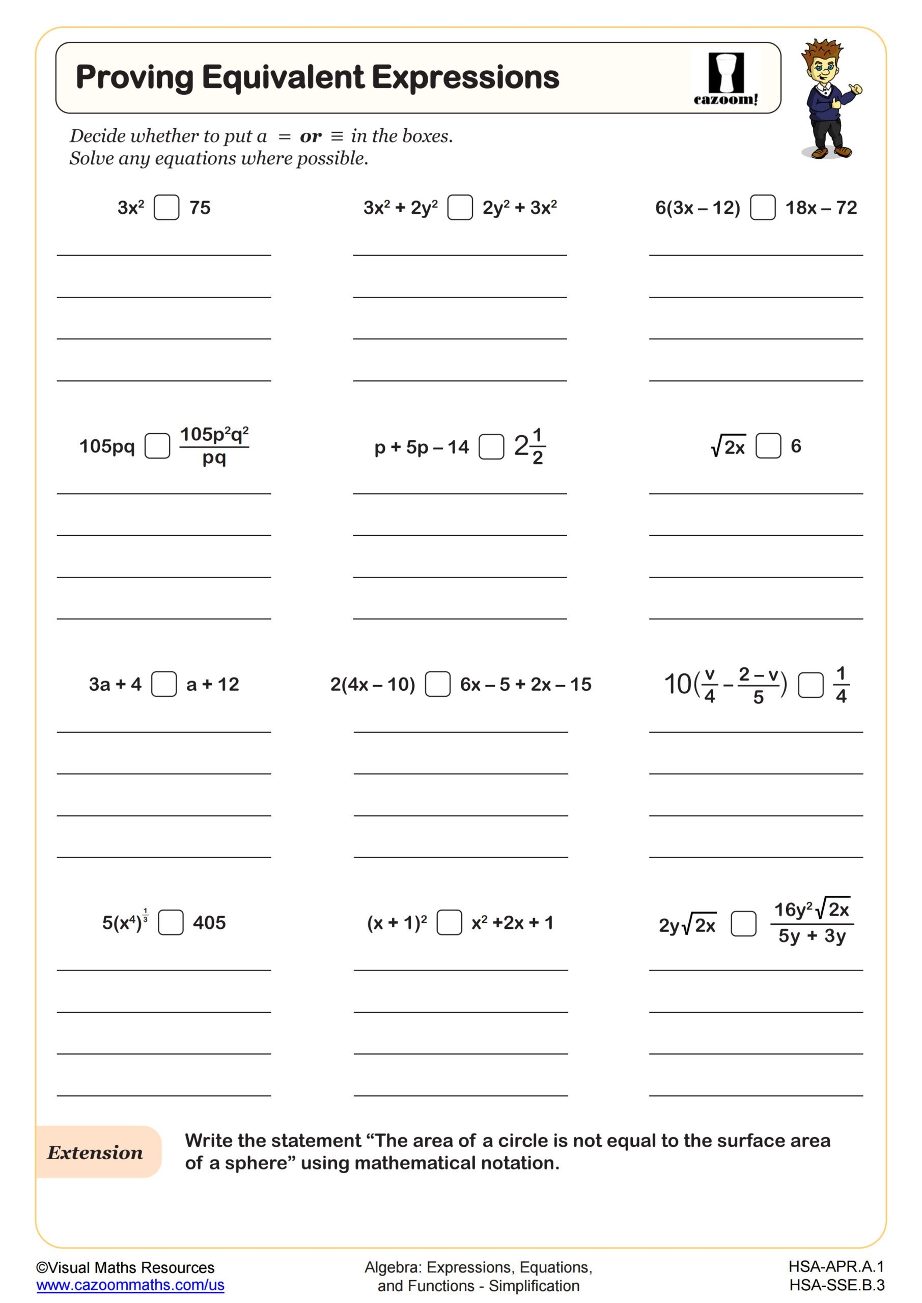 It’s important for students to practice equivalent expressions regularly to build a strong foundation in algebra. These worksheets can be used in the classroom or as homework assignments to reinforce the concepts taught in class.