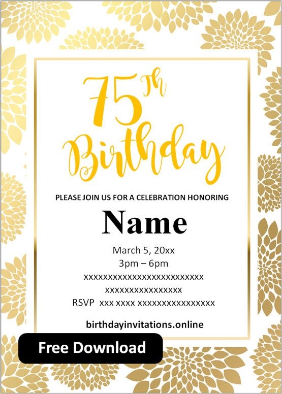Overall, using a free 75th birthday invitation template is a great way to save time and money while still creating a beautiful and memorable invitation for your loved one’s special day. With so many options available online, you’re sure to find the perfect design to suit your celebration and make it a day to remember for years to come.