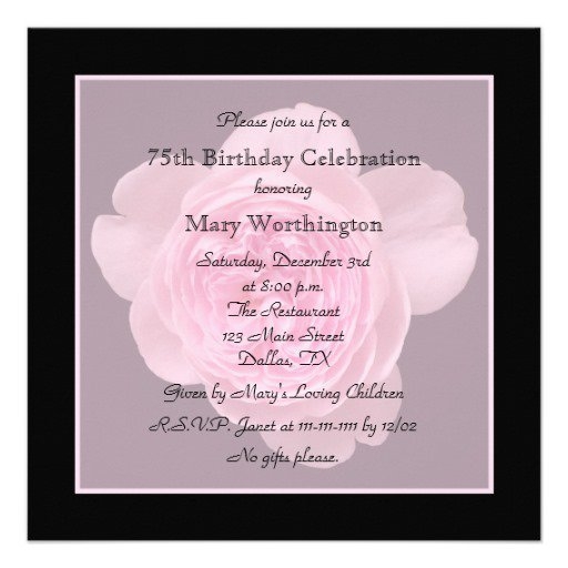 One popular option for 75th birthday invitations is to incorporate photos of the guest of honor throughout the years. This personalized touch adds a sentimental element to the invitation and is sure to bring a smile to their face. You can also include fun facts or trivia about the honoree to make the invitation even more unique and memorable.