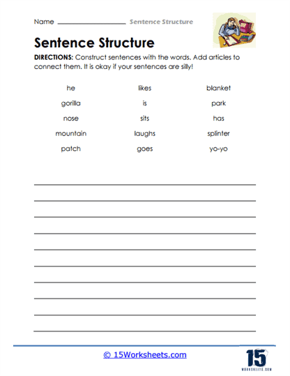 One common type of worksheet is the sentence diagramming exercise, where students break down a sentence into its individual parts (subject, verb, object, etc.) This visual representation can help students visualize the structure of a sentence and understand how different elements work together.