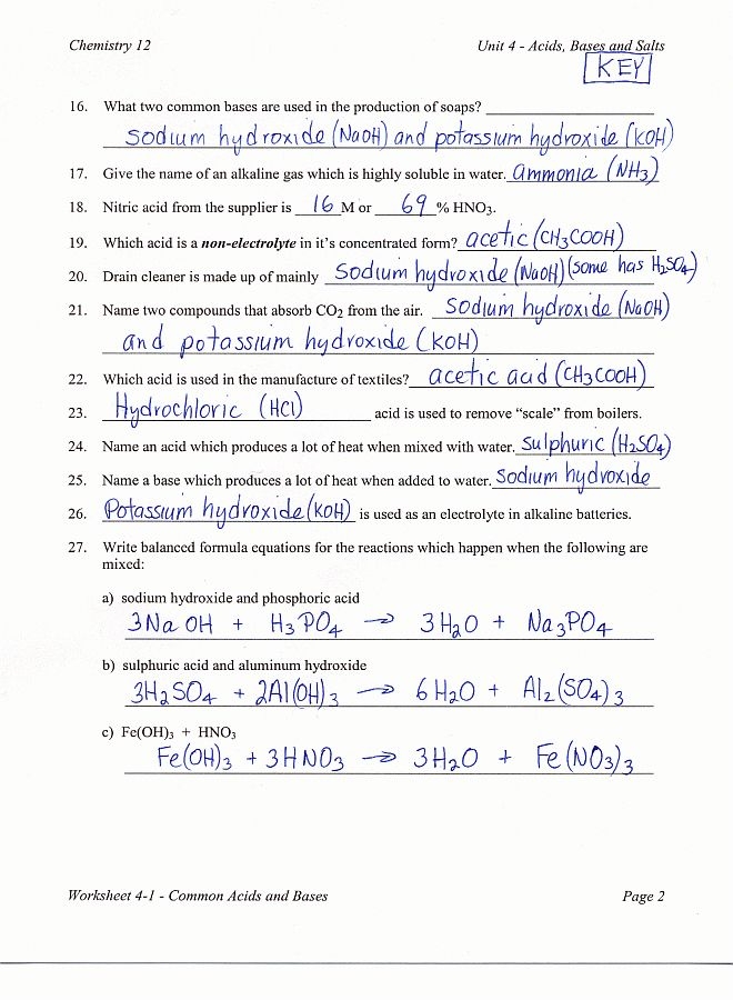 Acid base chemistry is a fundamental topic in chemistry that involves the study of acids and bases, their properties, reactions, and applications. A worksheet on acid base chemistry is a valuable tool for students to practice and reinforce their understanding of this important concept.