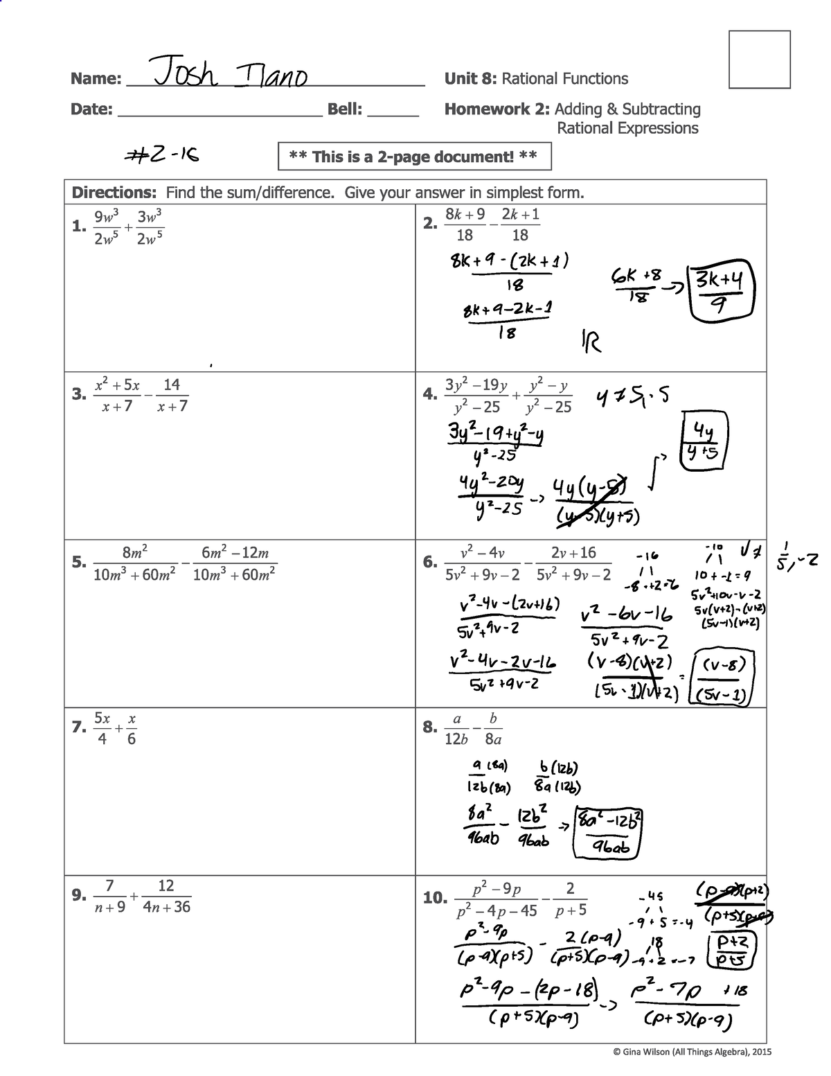 Working through a variety of problems on the adding and subtracting rational expressions worksheet allows students to practice and reinforce their understanding of these concepts. By completing the worksheet, students can improve their skills in factoring, finding common denominators, and simplifying fractions. This practice will ultimately help them tackle more complex algebraic problems in the future.