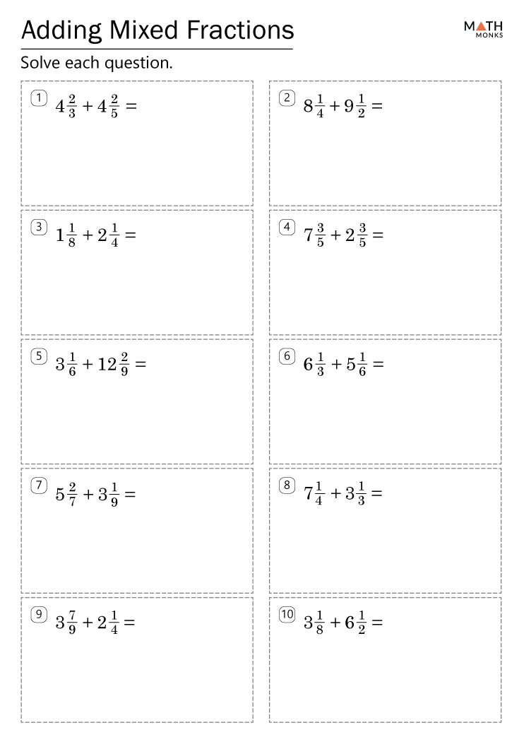 One of the fundamental skills in math is adding mixed fractions. This concept can be challenging for students, but with practice and the right resources, they can master it. One effective way to help students understand and practice adding mixed fractions is through worksheets. These worksheets provide a structured approach to learning and allow students to practice their skills in a controlled setting.