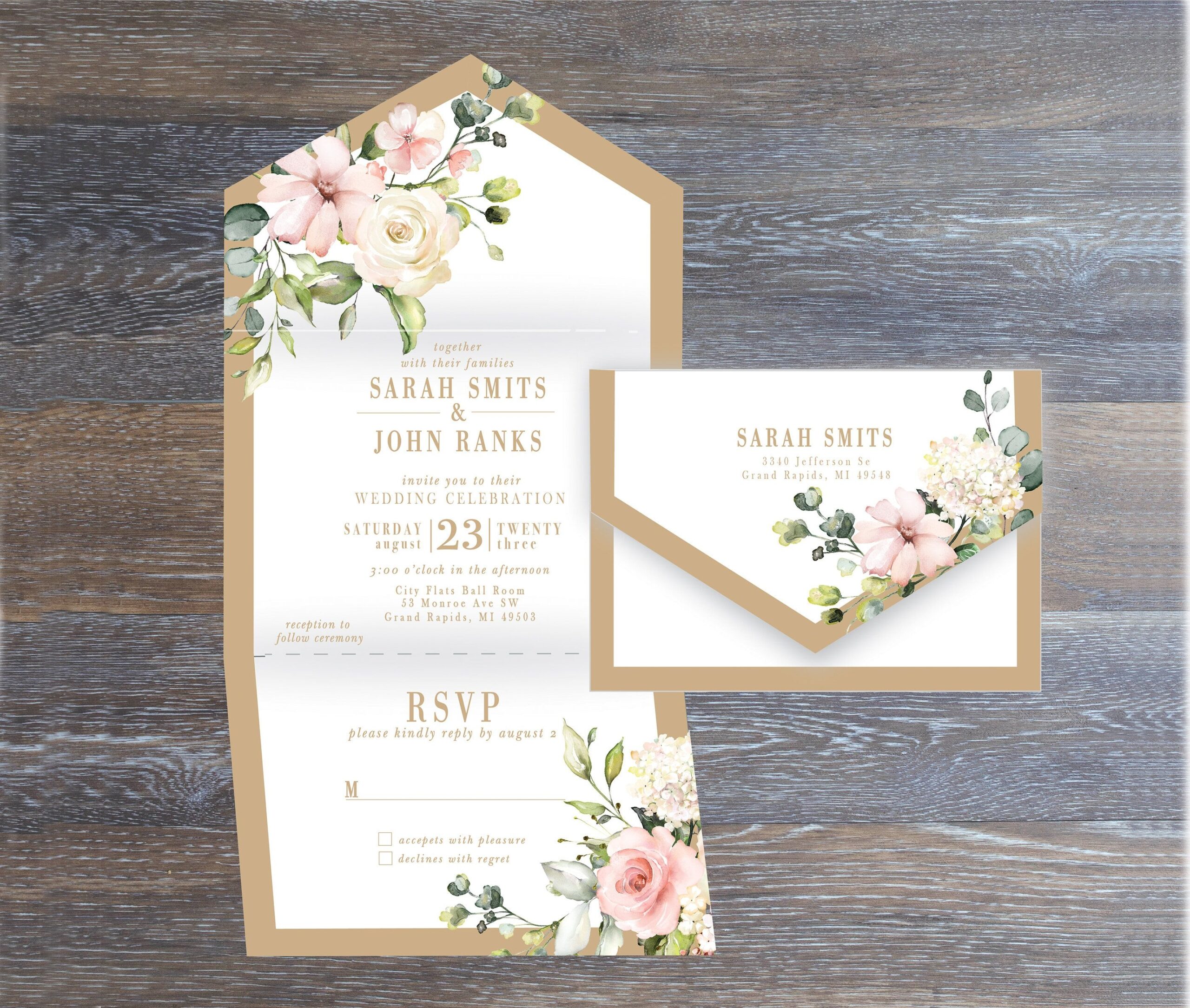 With an all in one wedding invitation template, you can easily create a cohesive and stylish invitation suite without the hassle of coordinating multiple pieces. These templates typically include the invitation, RSVP card, and details card all in one convenient package. This not only saves you time but also ensures that all your wedding stationery matches perfectly.