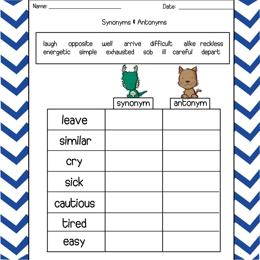 Antonyms and Synonyms Worksheets