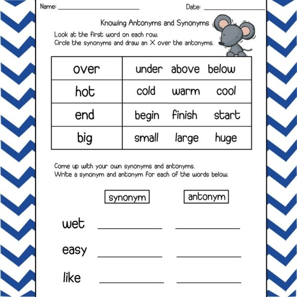 Synonyms worksheets, on the other hand, typically provide lists of words and ask students to identify words that are similar in meaning. For instance, a worksheet might include the word “big” and ask students to find the synonym from options such as “large,” “tiny,” or “huge.” By completing synonyms worksheets, students can expand their vocabulary and improve their ability to choose the right words to express themselves effectively.