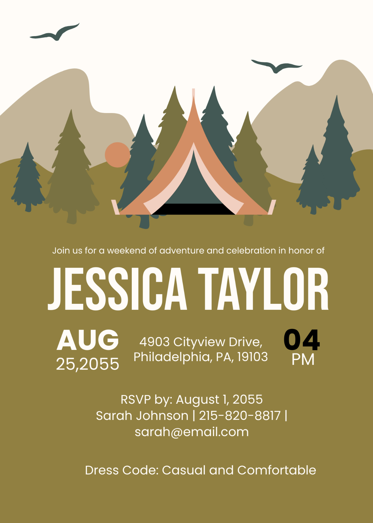 3. Rustic Bachelorette Invitation: For a more rustic and cozy vibe, consider using a bachelorette invitation template with woodsy elements and earthy tones. This template is great for a camping trip or a cozy weekend getaway with the bride-to-be. Customize it with your party information and let the festivities begin!