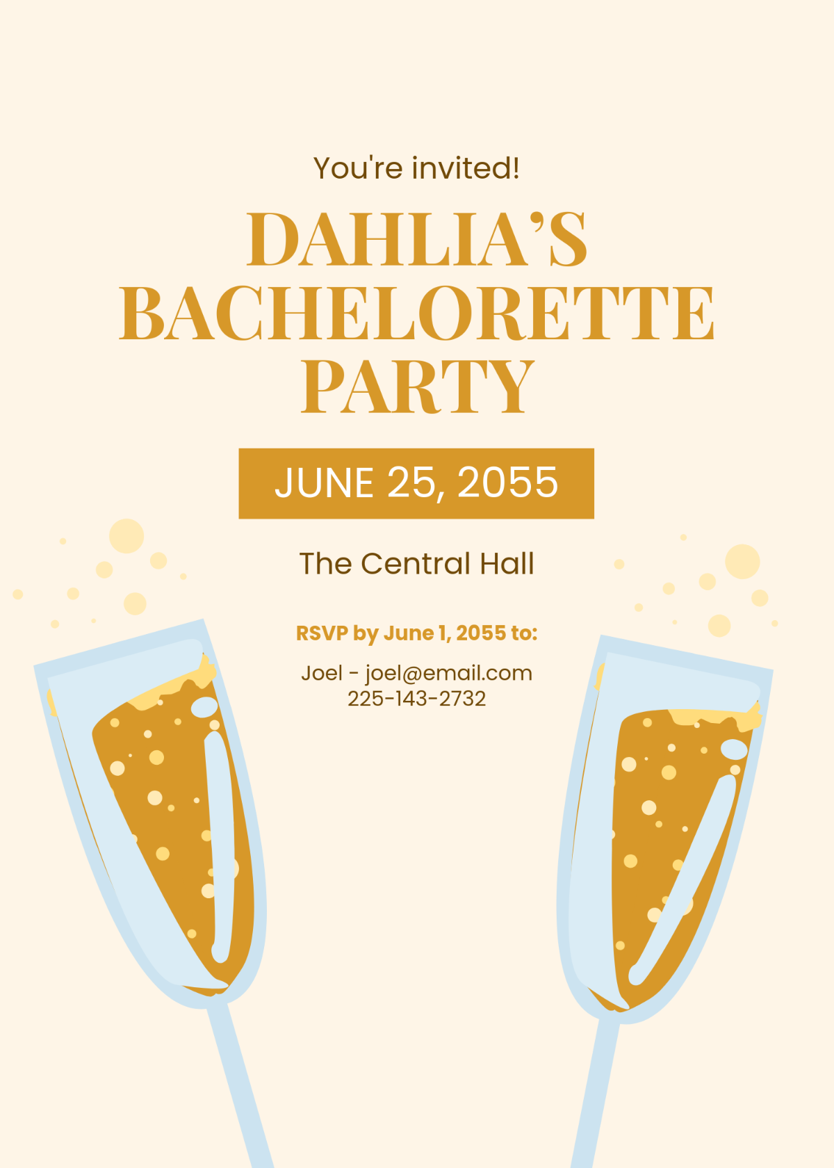 5. Fun Bachelorette Invitation: Planning a playful and fun bachelorette party? Choose a template with quirky illustrations, bright colors, and whimsical fonts. This template is sure to get everyone excited for the upcoming celebration. Add a touch of humor and personality to your invites and get ready for a memorable bachelorette bash!