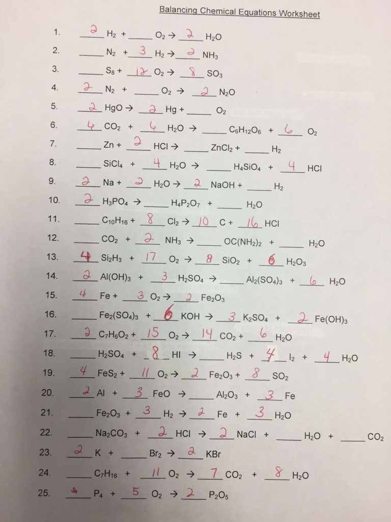 When it comes to chemistry, one of the fundamental skills that students need to master is balancing chemical equations. This process involves ensuring that the number of atoms of each element on the reactant side is equal to the number of atoms on the product side. Balancing chemical equations can be challenging for many students, which is why worksheets with answer keys are essential tools for practice and reinforcement.