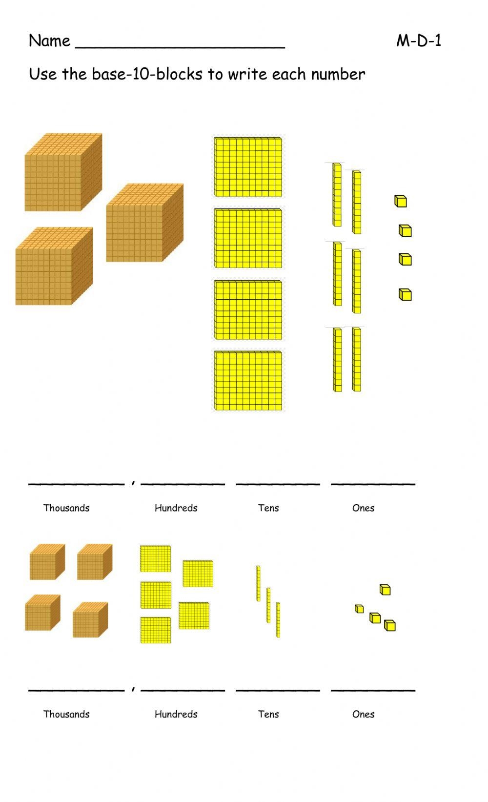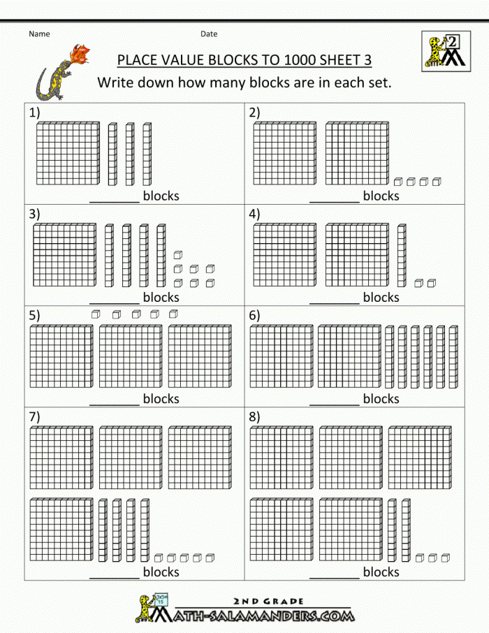 Base Ten Blocks Worksheets