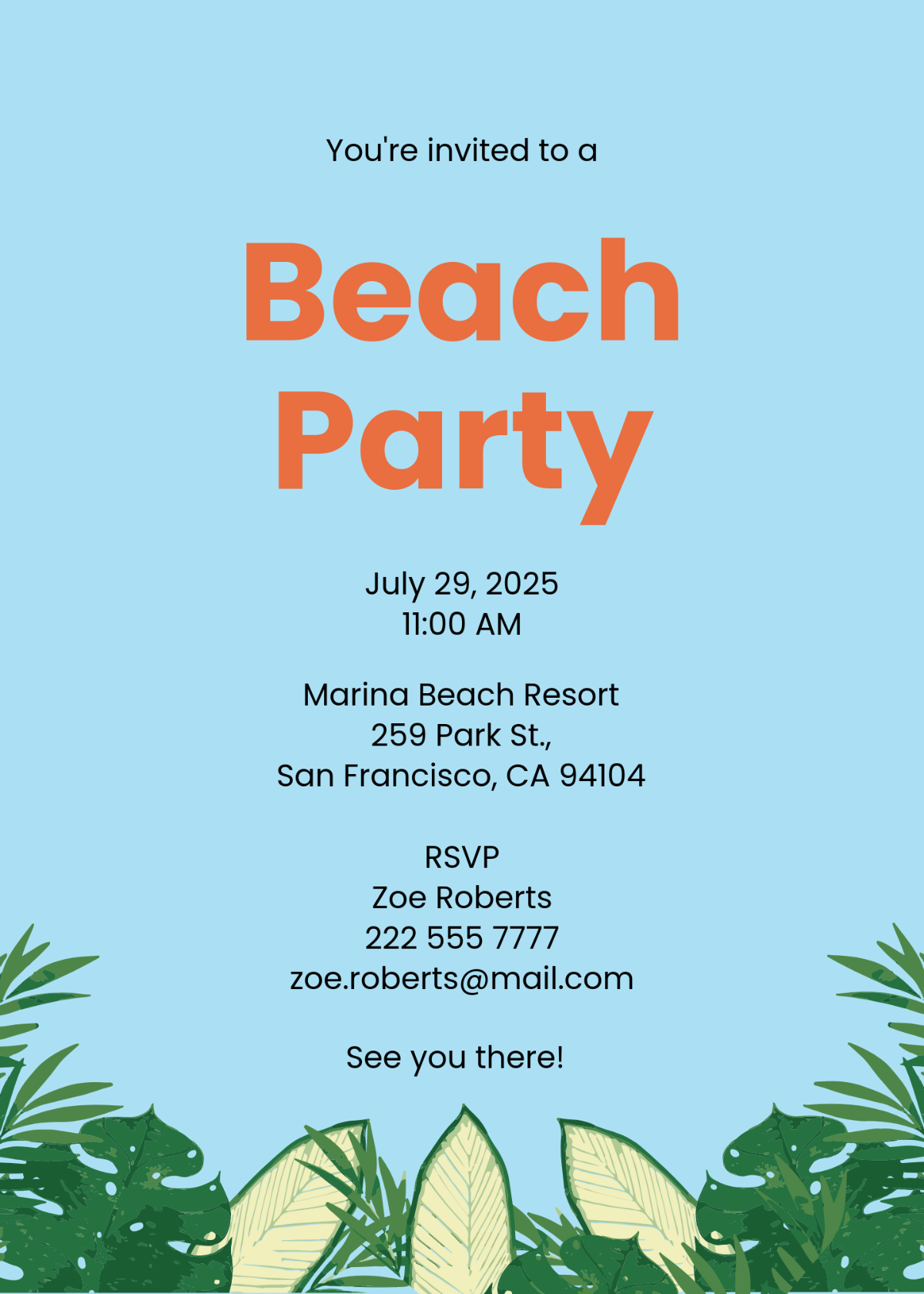 Whether you’re hosting a birthday bash, a summer BBQ, or just a casual get-together by the shore, our beach party invitation templates are sure to impress your guests and get them excited for the festivities ahead.