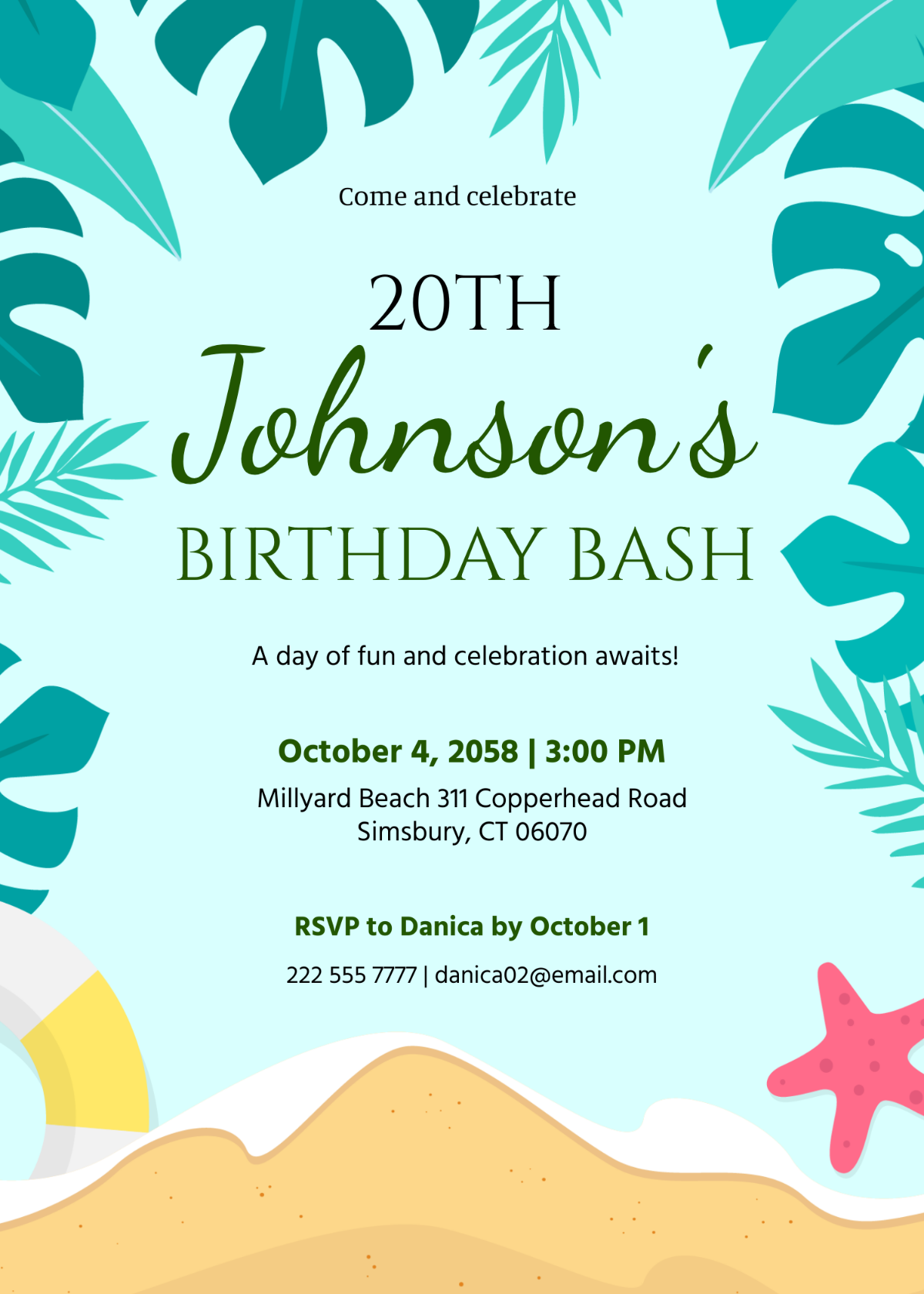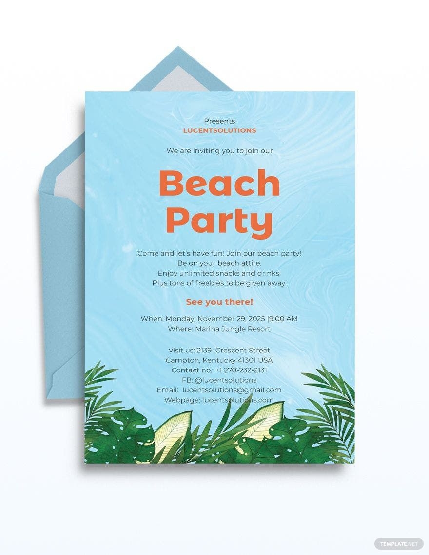 Beach party invitation templates come in a variety of designs and styles, from tropical prints and palm trees to seashells and starfish. You can customize the template with your own party details, such as the date, time, location, and RSVP information. Whether you prefer a simple and elegant design or a bright and colorful one, there’s a beach party invitation template out there to suit your taste.