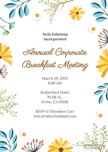 Corporate Annual Breakfast Invitation Template In Illustrator Pages