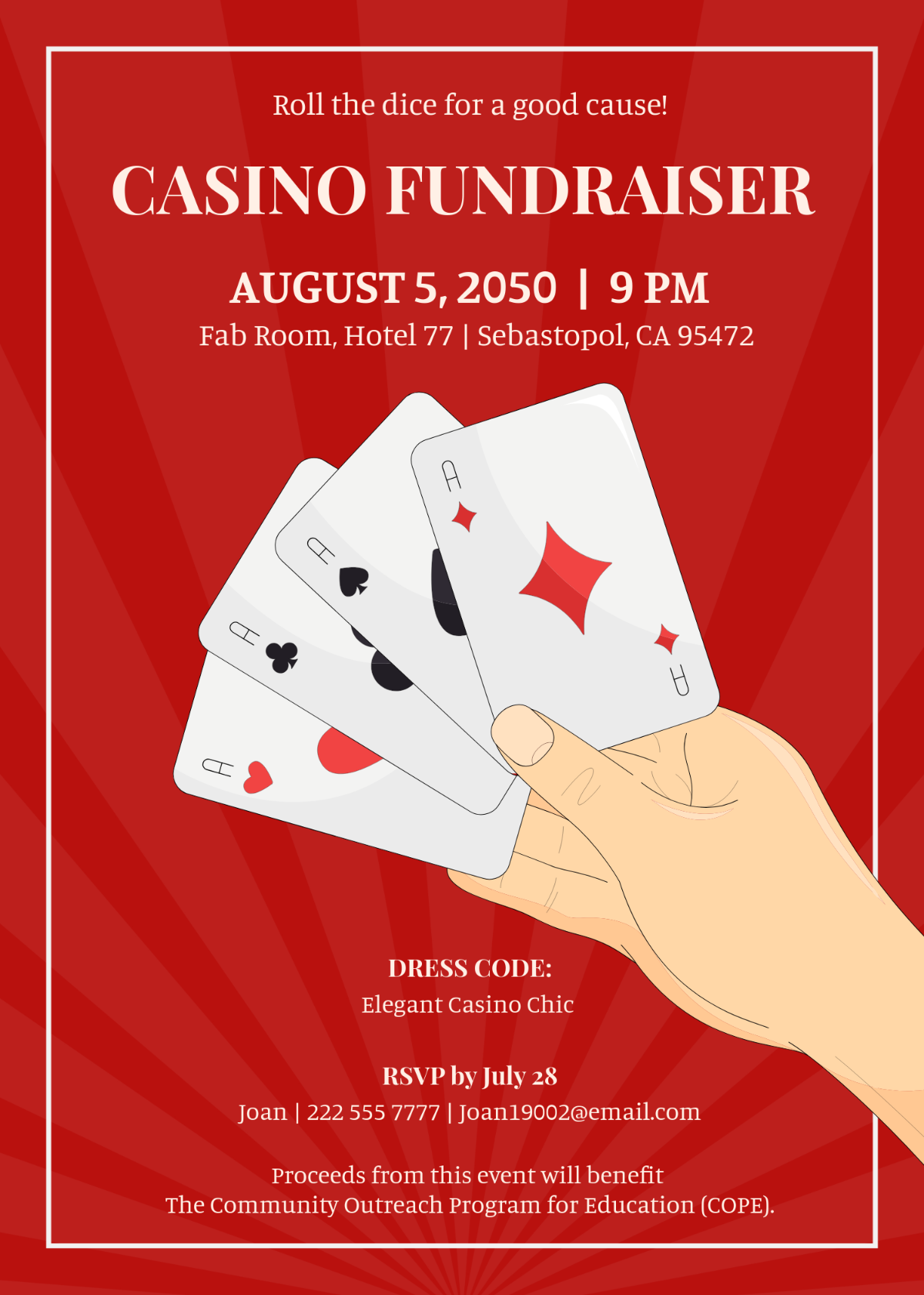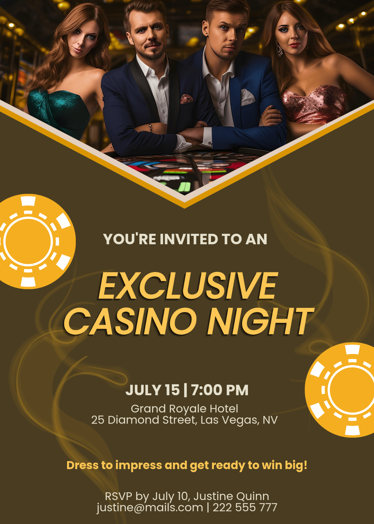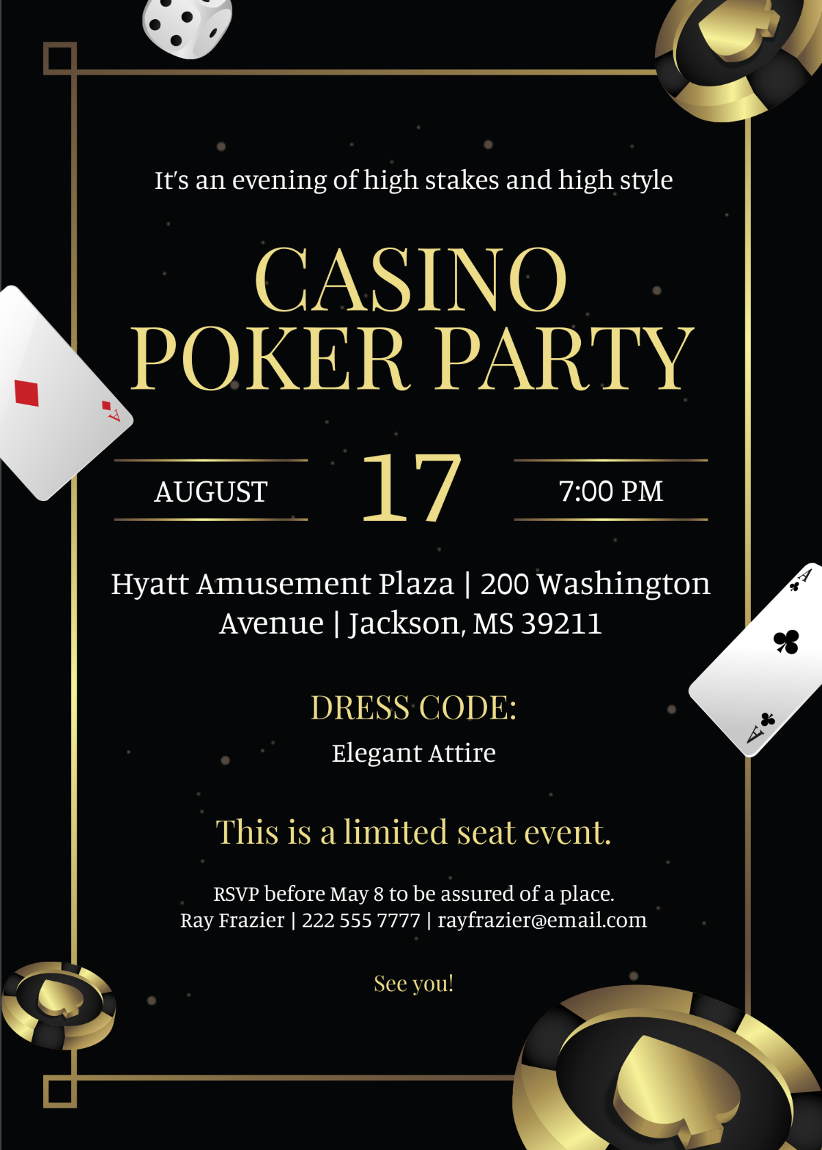 Some blank casino invitation templates also include space for RSVP information, event details, and dress code instructions, making it convenient for you to provide all the necessary information to your guests in one stylish package. You can also add your own logos or branding to the invitations to give them a personalized touch that will make your event stand out.