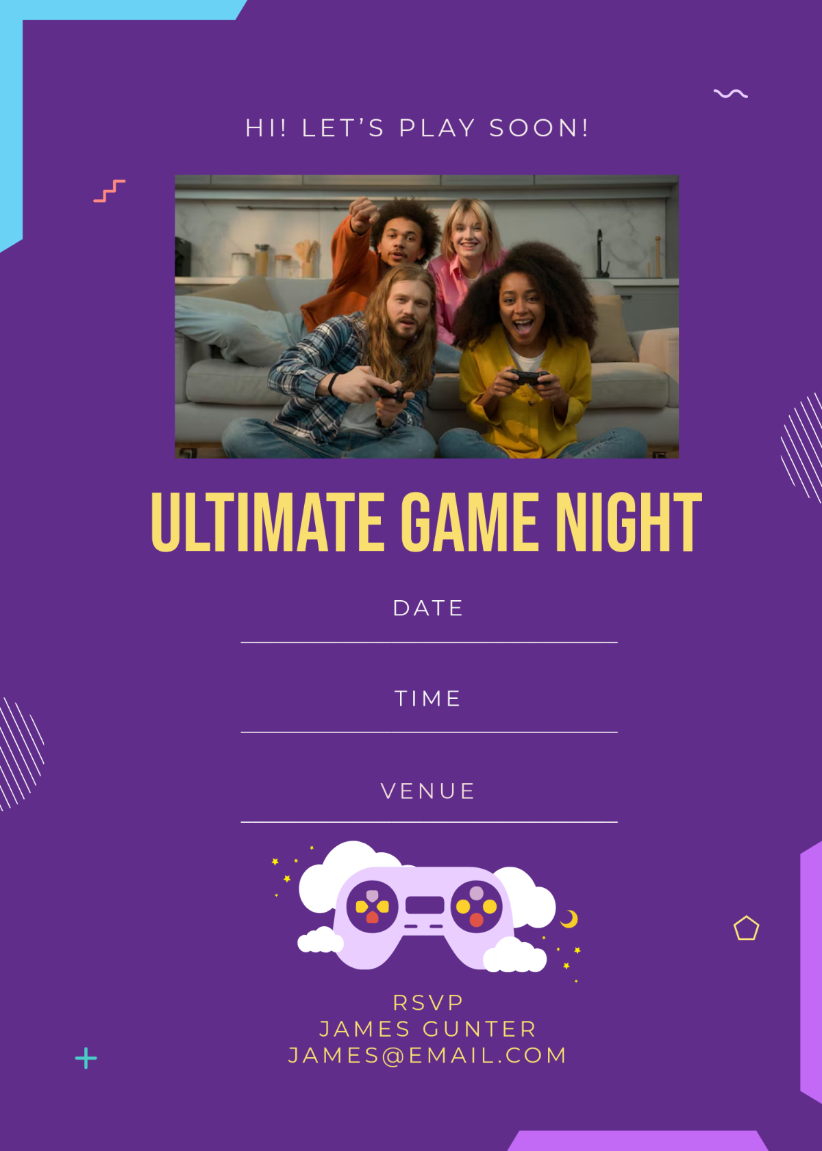 Feel free to customize this template with your own details and personal touches to make it unique to your event. You can also add graphics or images related to games to make the invitation more visually appealing.
