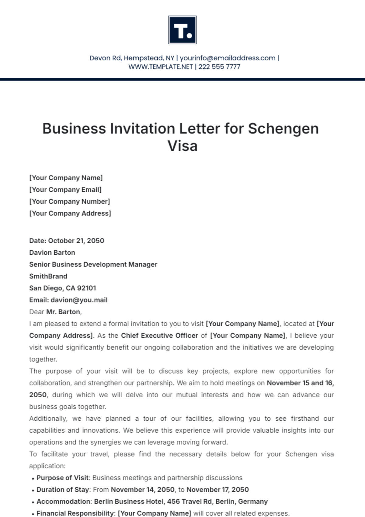 Writing a business invitation letter for a visa is a formal and professional process that requires attention to detail. By using a template like the one provided above, you can ensure that your invitation letter is clear, concise, and meets all the necessary requirements for a successful visa application.