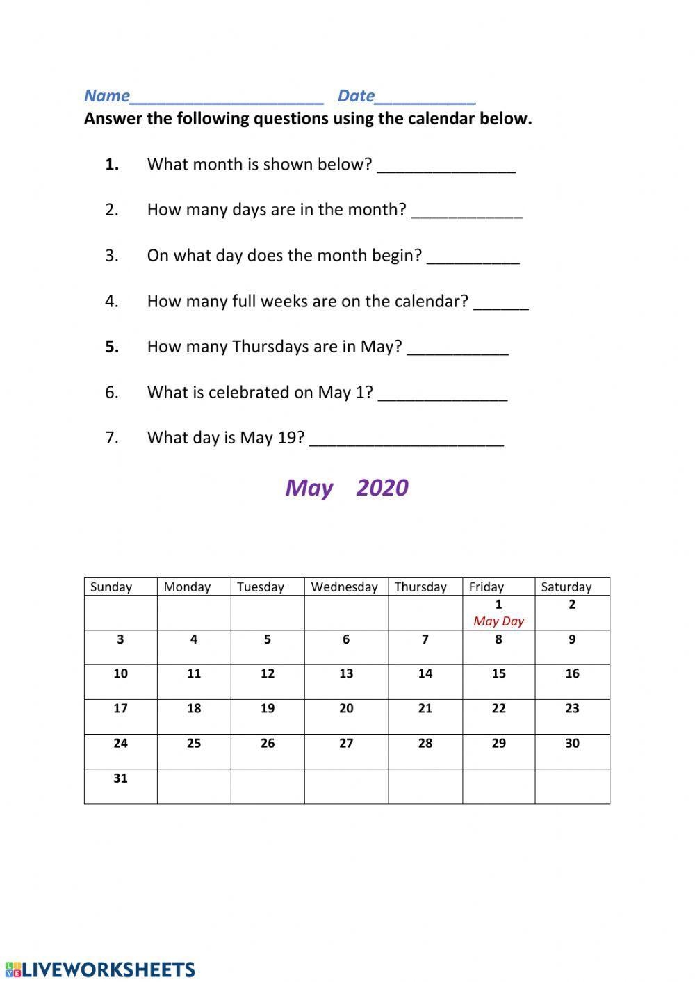 Calendar worksheets can also be a fun and engaging way for students to learn about different holidays and events that occur throughout the year. They can practice marking special dates on a calendar and learn about the significance of each holiday or event.