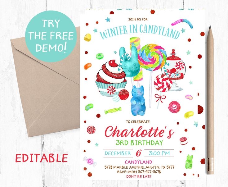 Don’t miss out on the opportunity to create a memorable Candyland-themed party with a free editable invitation template. With its vibrant colors and whimsical design, your guests will be delighted to receive such a sweet invitation. So go ahead and start customizing your template today!