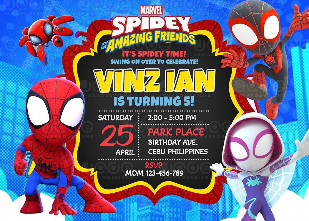 Don’t miss out on the opportunity to wow your guests with an eye-catching and creative invitation. Download the Canva Spidey and his amazing friends invitation template free today and start planning a superhero-themed party that your little one will never forget!