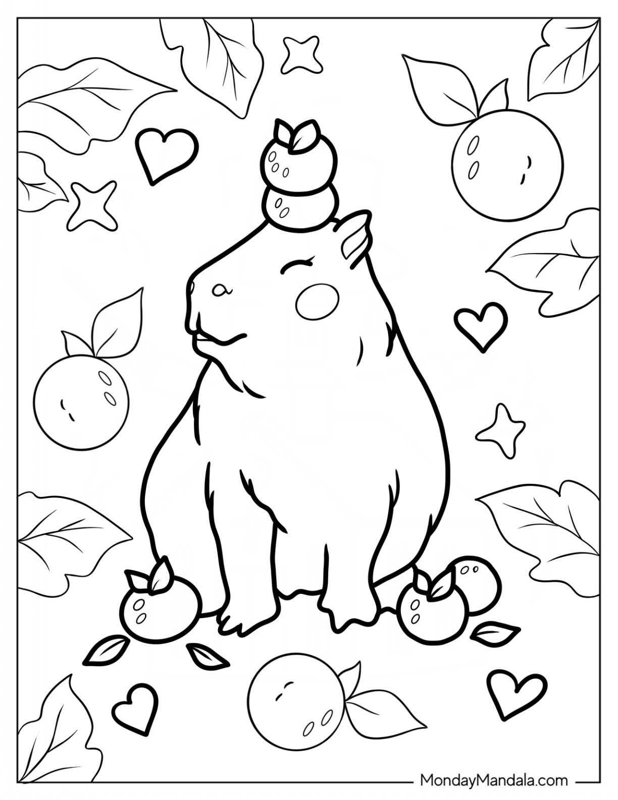 Some coloring pages may also include other animals that are commonly found in the same habitat as capybaras, such as birds, fish, and insects. This can provide a more complete picture of the ecosystem in which capybaras live, allowing children to learn about the interconnectedness of all living things.