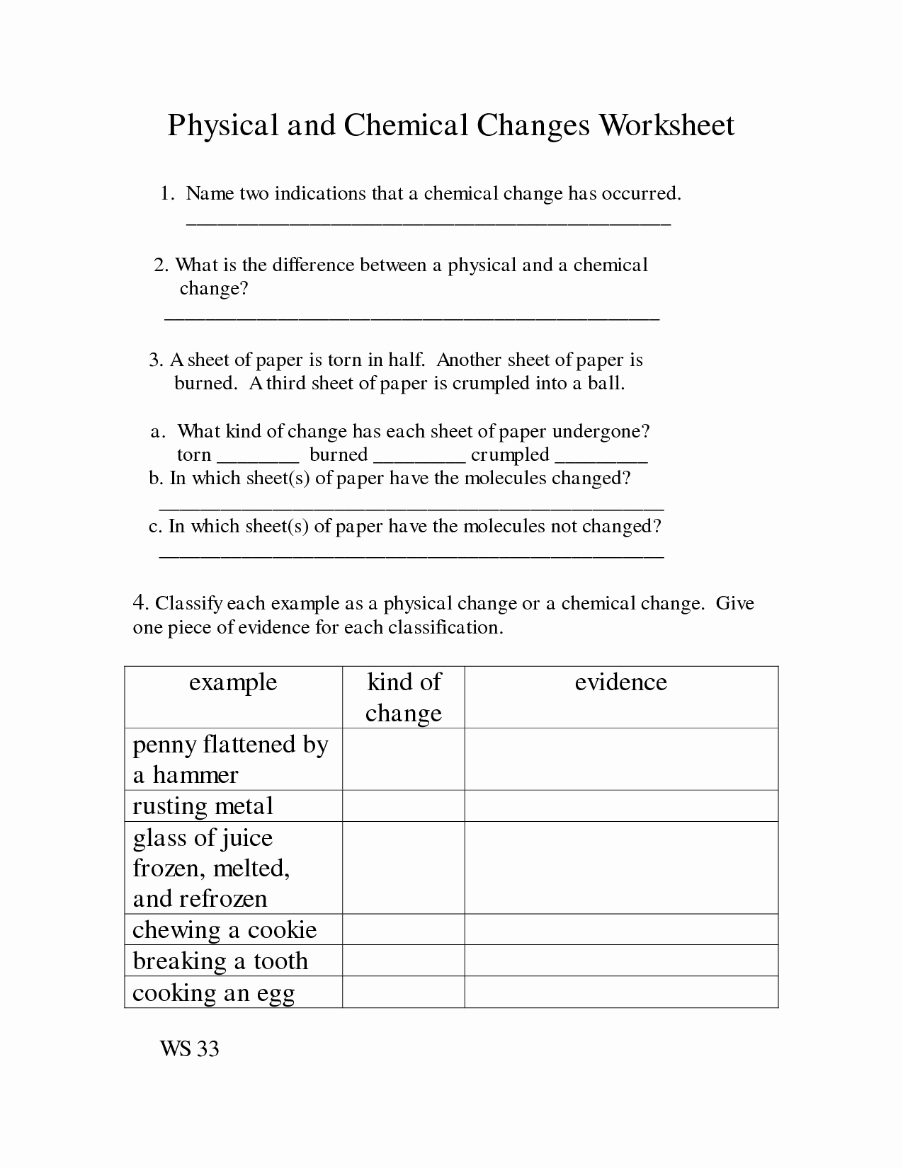 Completing a worksheet on chemical and physical changes can help you practice applying these concepts to real-life situations and develop your critical thinking skills. By analyzing different scenarios and determining whether they represent chemical or physical changes, you can deepen your understanding of how matter behaves and the factors that influence its properties.