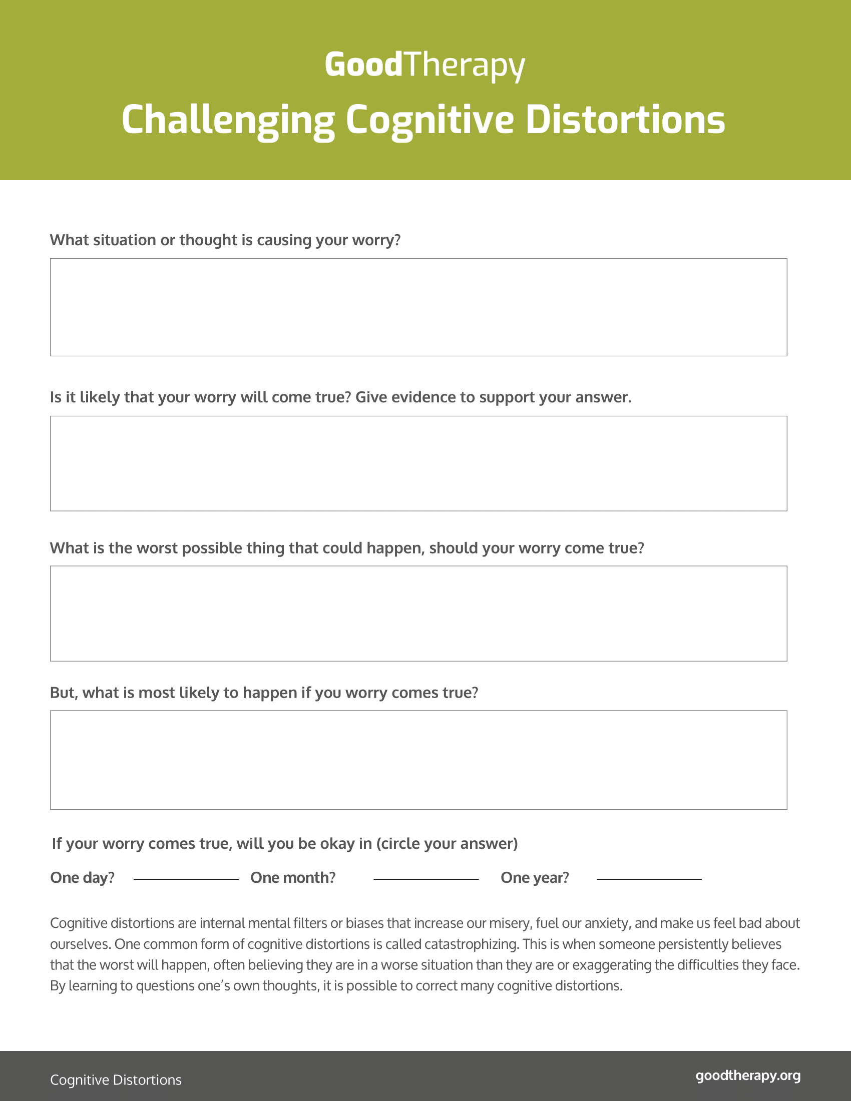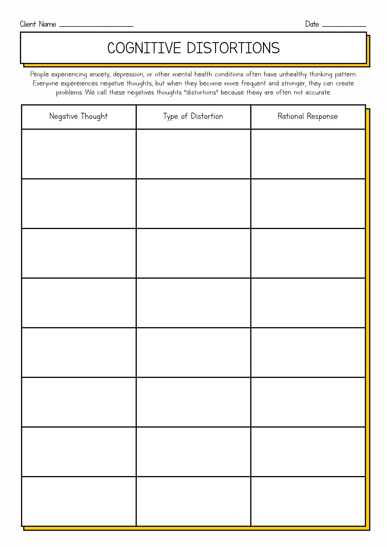 Cognitive Distortions Worksheets
