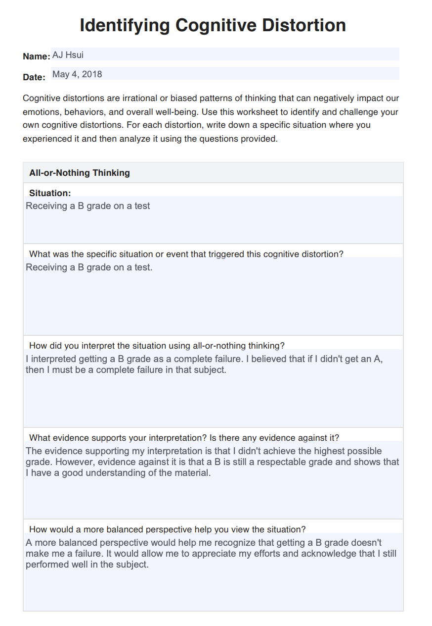 By utilizing cognitive distortions worksheets, individuals can gain a better understanding of their thought processes and learn how to replace harmful distortions with more balanced and rational thinking. These worksheets are a valuable tool in therapy sessions, self-help practices, or even for personal reflection and growth. They provide a structured approach to identifying and changing negative thought patterns, ultimately leading to improved mental well-being.