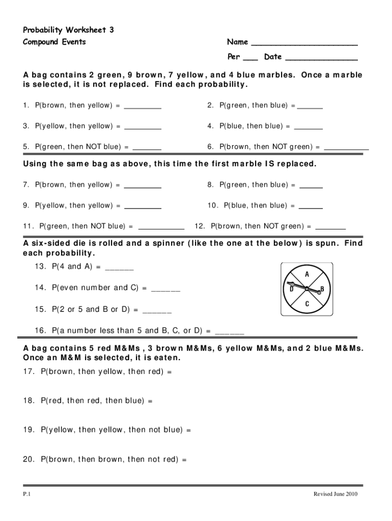 Compound probability involves finding the likelihood of two or more events occurring together. This type of probability is often encountered in real-life situations where multiple events are interrelated. A compound probability worksheet is a valuable tool for students to practice their skills in calculating the probability of complex events.