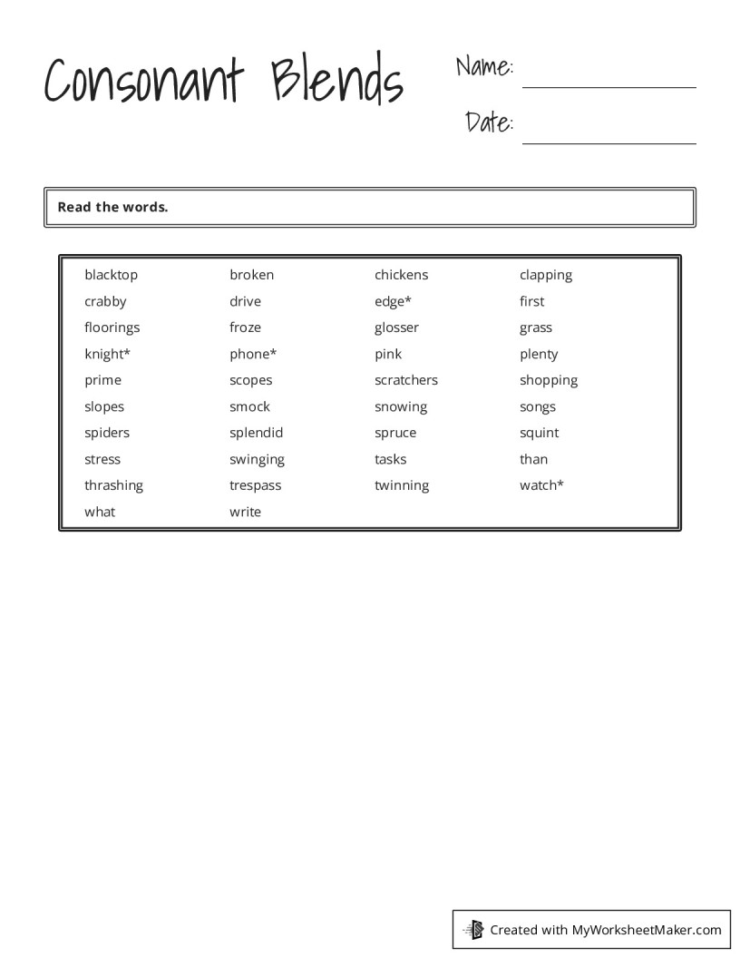 Consonant blends are two or more consonants grouped together in words that make a distinct sound. Teaching students about consonant blends is essential in helping them improve their reading and writing skills. One effective way to reinforce this concept is through the use of worksheets.