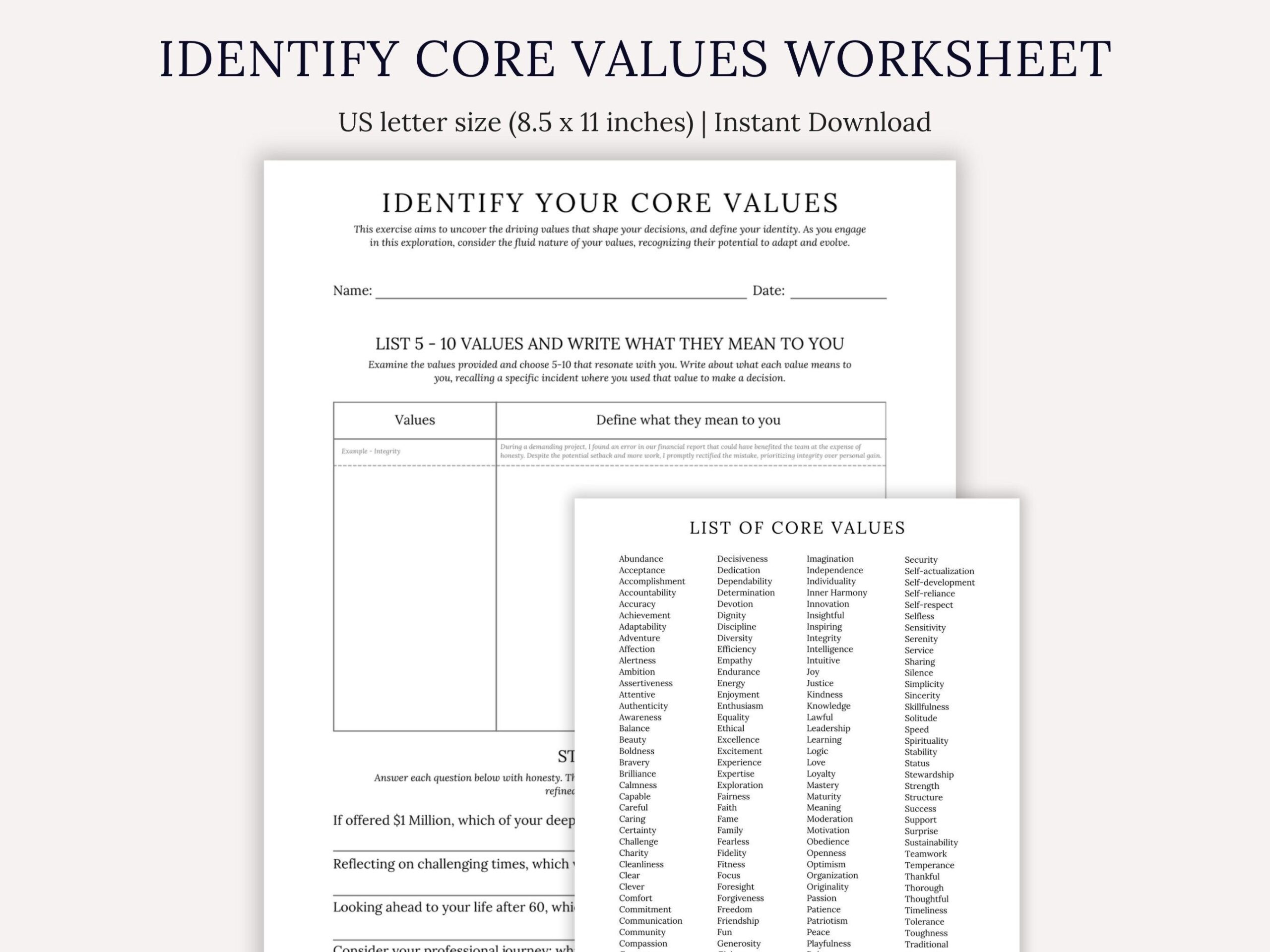 A core values worksheet is a tool that can help individuals clarify and define their core values. It allows them to reflect on what truly matters to them and helps them align their actions with their values. This worksheet can be a valuable resource in self-discovery and making informed decisions.