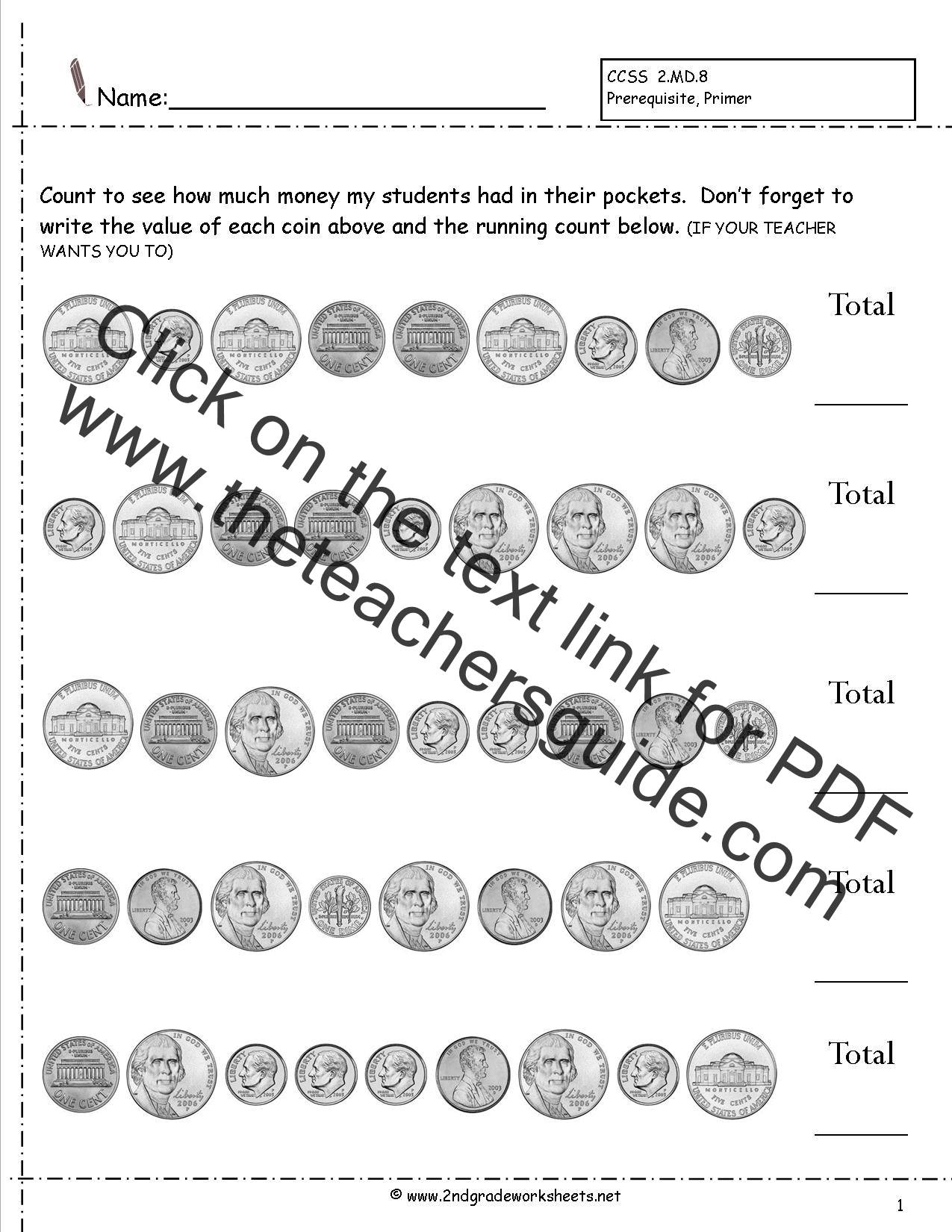 2. Counting by Type: This type of worksheet requires children to count a certain number of each coin. For example, they may need to count 5 pennies, 3 nickels, and 2 dimes. This helps children understand the value of each coin and how to add them together.