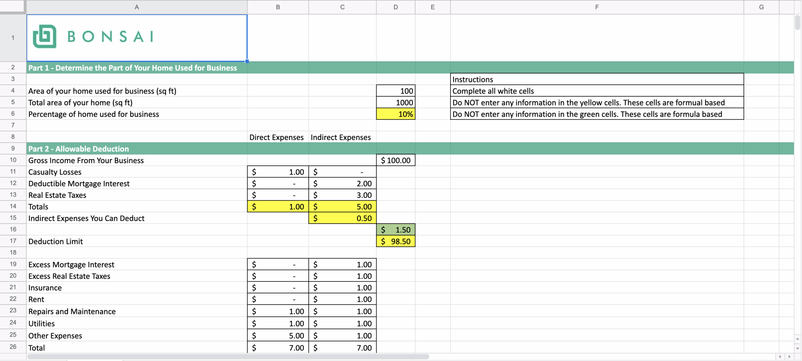 Deduction Worksheet