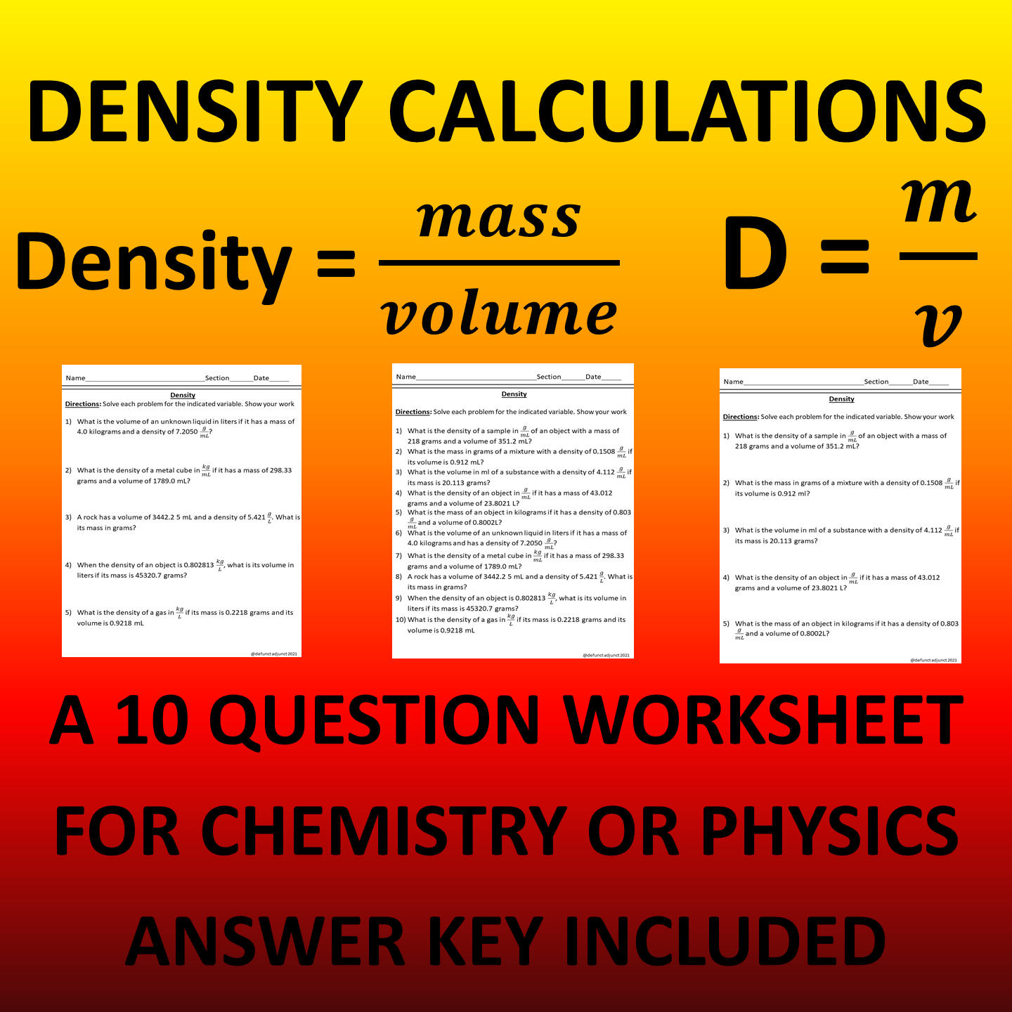 When it comes to understanding the concept of density, students often find it challenging to grasp the calculations involved. Density is defined as the mass of a substance per unit volume, and it plays a crucial role in various scientific fields such as chemistry, physics, and even engineering. To help students master the concept of density, teachers often provide them with worksheets that contain problems related to density calculations.