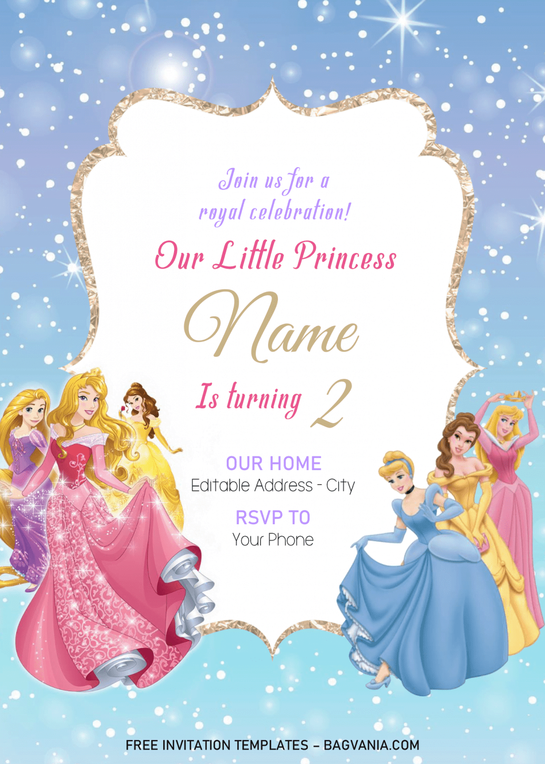 Each template is available for free download, making it easy and budget-friendly to create a magical party for your little princess. With options for both printable and digital invitations, you can choose the format that works best for you. Plus, our templates are easily customizable, allowing you to add your own personal touch to make the invitation truly unique.