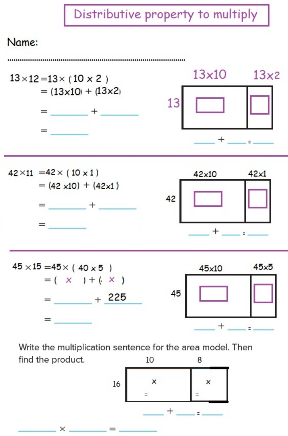 These worksheets typically include a variety of problems that require students to apply the distributive property to simplify expressions. By working through these worksheets, students can improve their understanding of how to use this property effectively in multiplication problems.