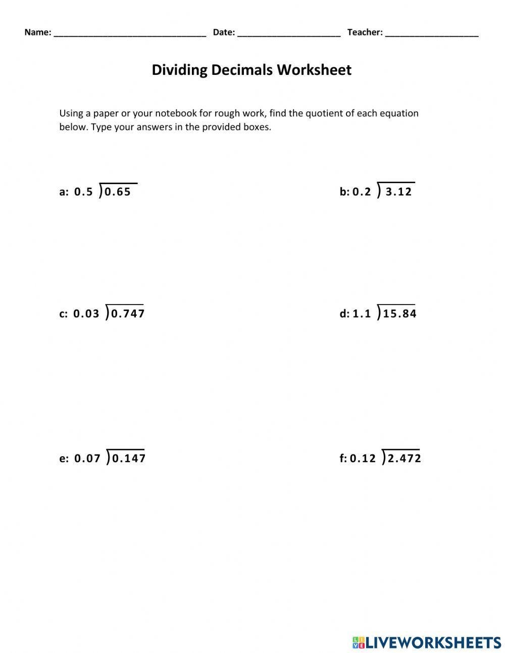 Dividing Decimals By Decimals Activity Live Worksheets Worksheets