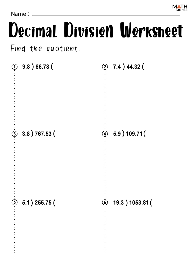 Decimals can be a tricky concept for students to master, but with the right practice and resources, they can become proficient in dividing decimals. Division of decimals worksheets are a valuable tool for students to practice this skill and improve their understanding of the topic. These worksheets provide exercises that range from simple division problems to more complex ones, allowing students to gradually build their skills and confidence in dividing decimals.