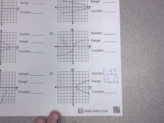 Domain and Range from a Graph Worksheet