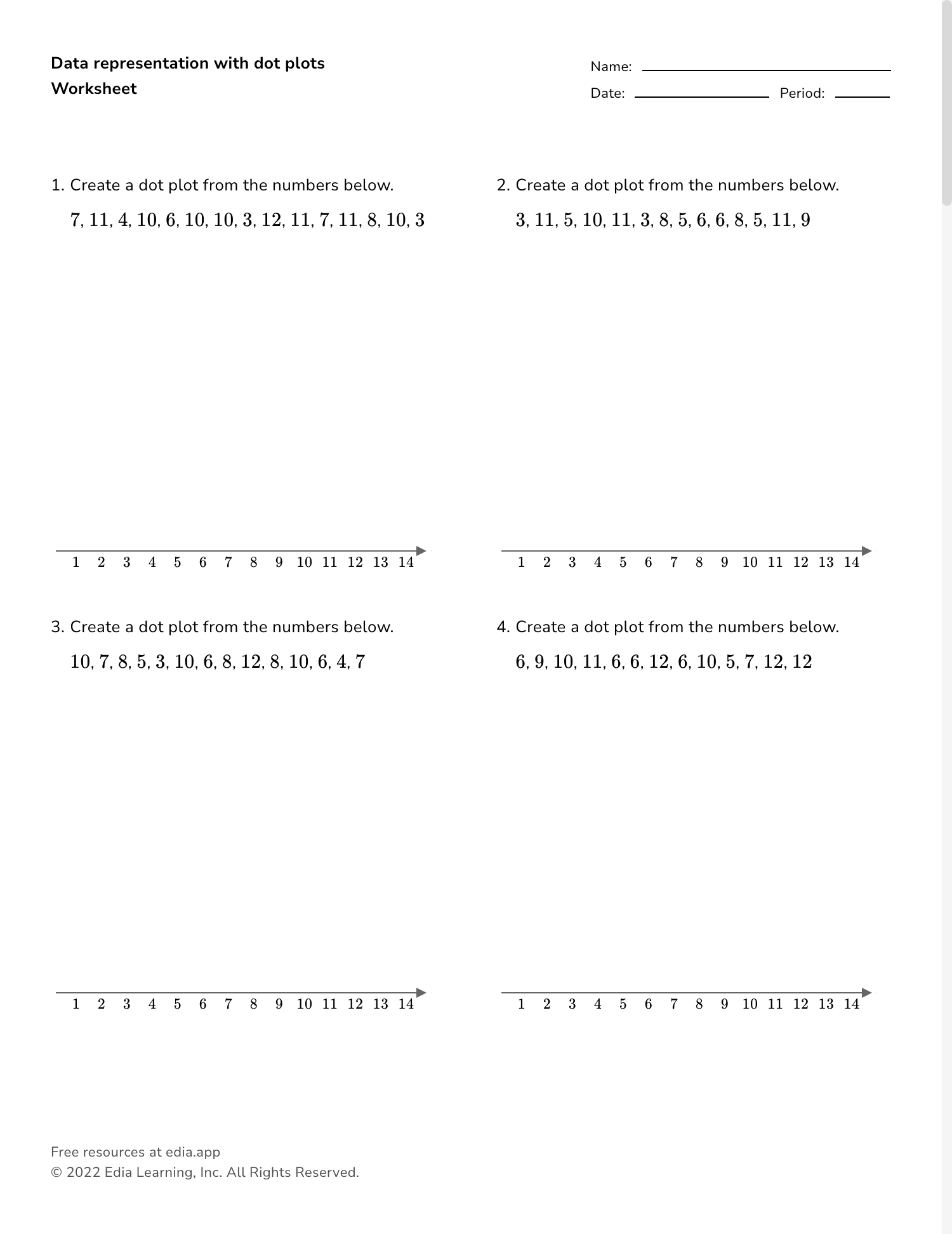 Furthermore, dot plot worksheets can be a useful tool for teachers to assess students’ understanding of data analysis concepts. By assigning students to create and interpret dot plots, teachers can gauge their students’ ability to organize and analyze data effectively. This can help teachers identify areas where students may need additional support and tailor their instruction to meet individual needs.