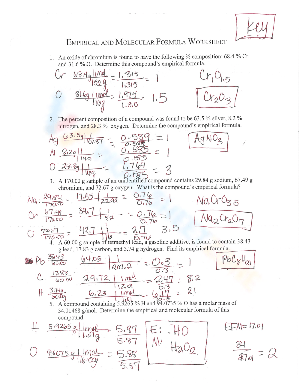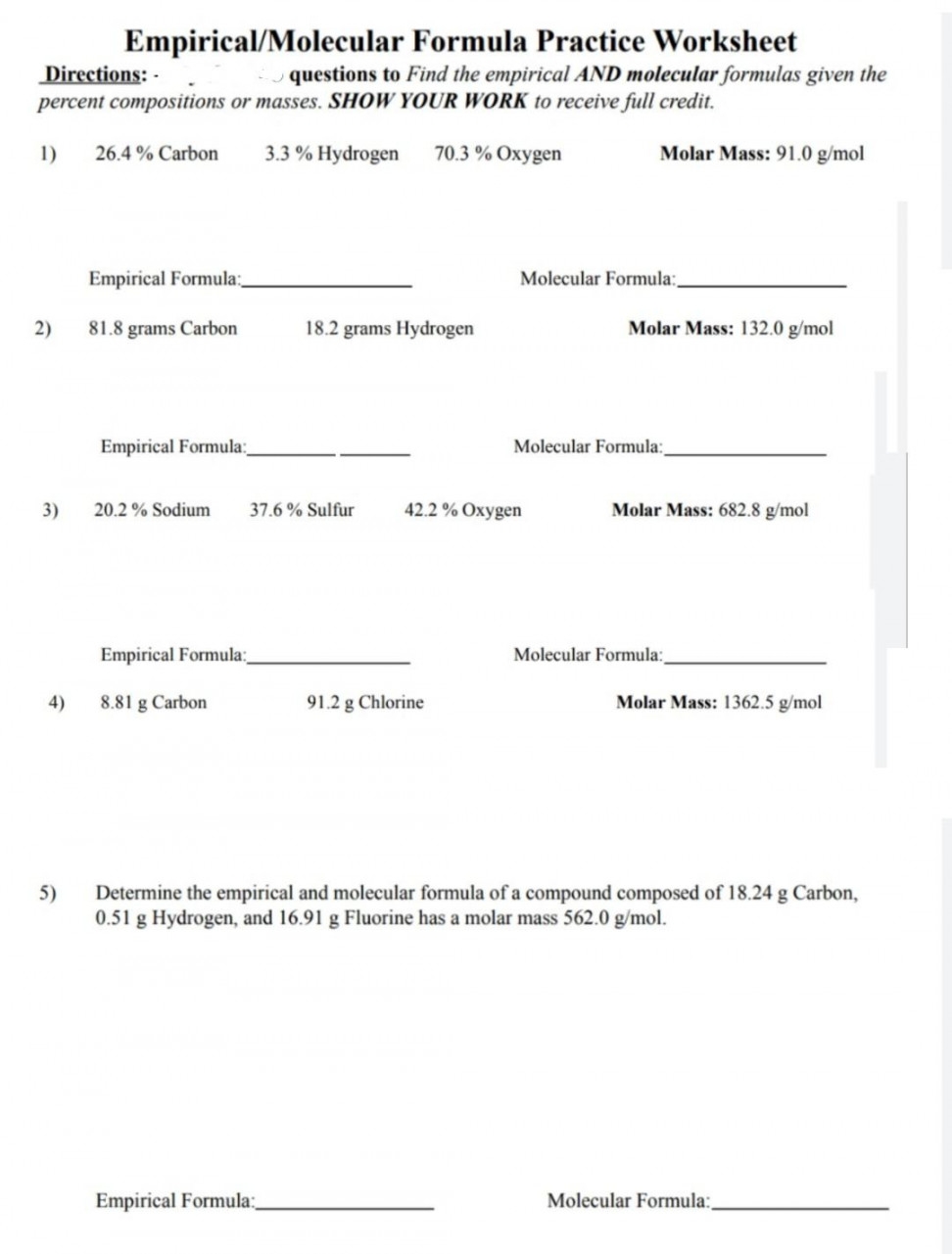 Empirical Formula Worksheet
