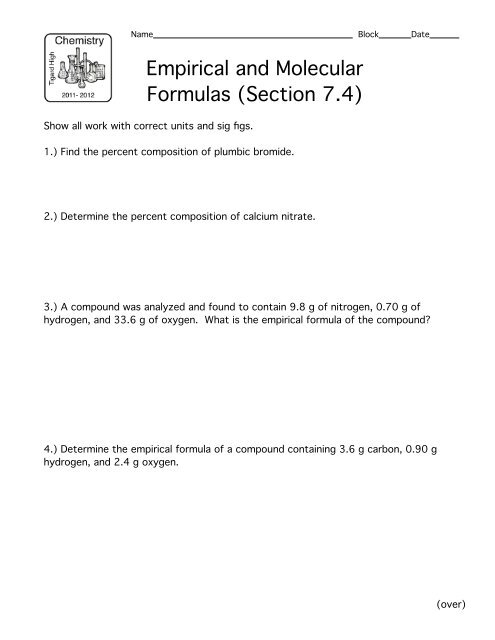 Empirical formula worksheets provide students with the opportunity to apply their knowledge of chemical formulas and calculations in a structured format. These worksheets often contain a variety of problems that require students to determine the empirical formulas of different compounds based on given information. By working through these worksheets, students can improve their problem-solving skills and gain a deeper understanding of empirical formulas.