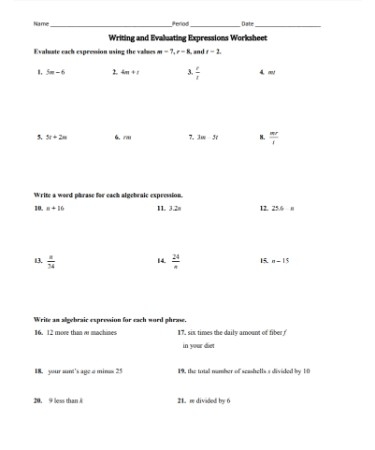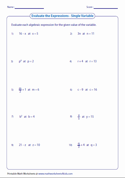 One of the key benefits of using evaluating expressions worksheet PDFs is that they provide a structured format for practicing the skills needed to evaluate expressions. These worksheets typically include a variety of problems that cover different types of expressions, allowing students to work on a range of problems and build their confidence in the topic.