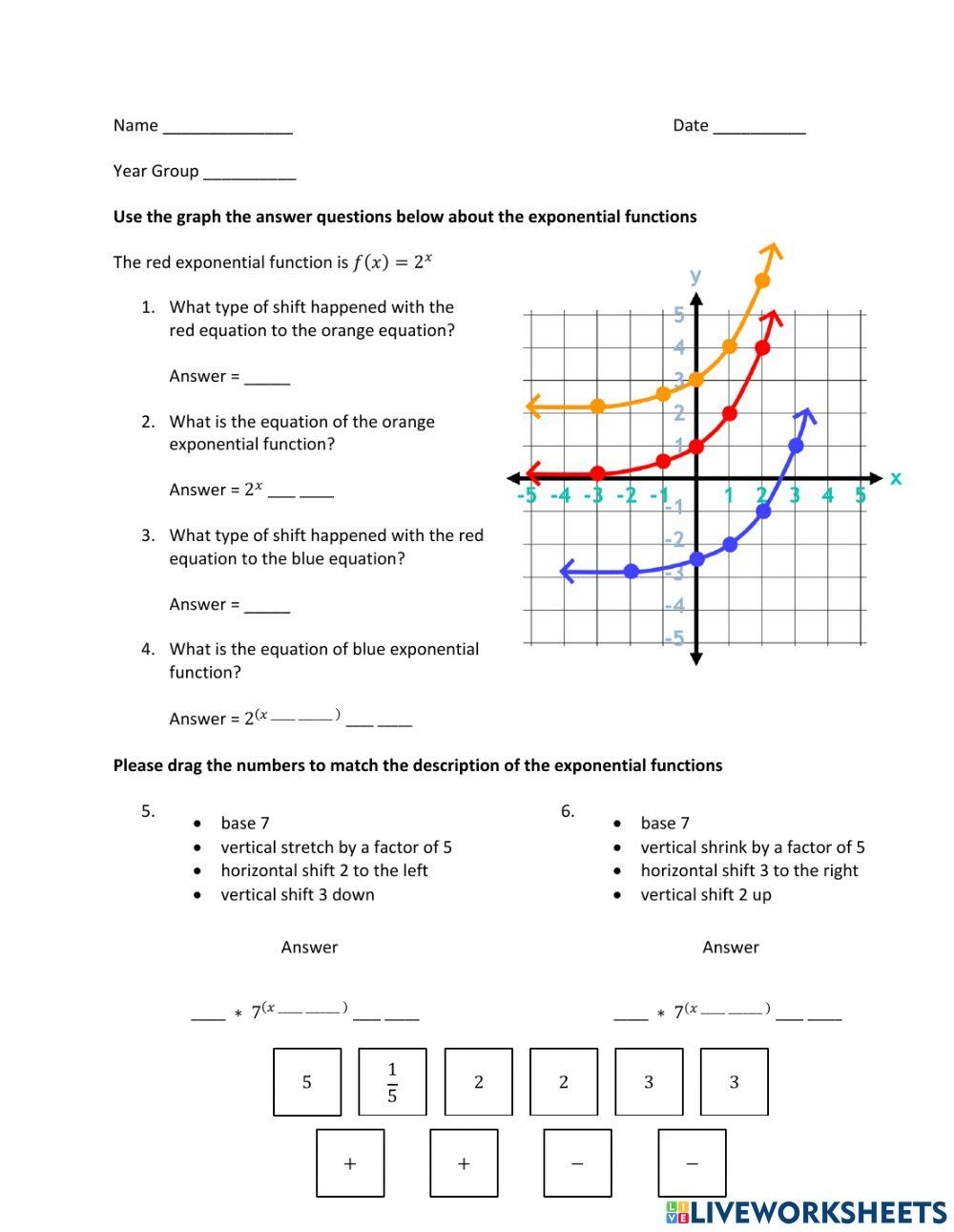 Overall, exponential function graph worksheets are valuable tools for students to enhance their understanding of exponential functions and develop their graphing skills. By actively engaging with the material and applying their knowledge through practice, students can improve their proficiency in graphing exponential functions and solving related problems.
