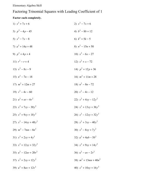 One way to practice and improve your skills in factoring trinomials is by using worksheets. A factor trinomial worksheet typically contains a series of trinomial expressions that need to be factored. By working through these exercises, you can enhance your understanding of the factoring process and become more proficient in solving trinomial equations.