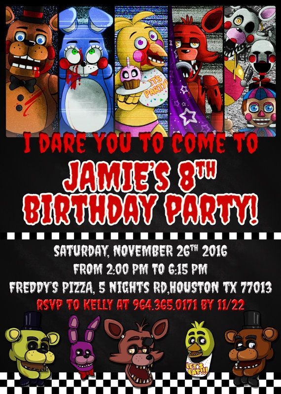 Whether you’re hosting a Five Nights at Freddy’s themed party for kids or adults, our invitation templates are versatile and can be tailored to suit any age group. You can also add your own personal touch by including additional images, text, or decorations to make the invitation truly one-of-a-kind.