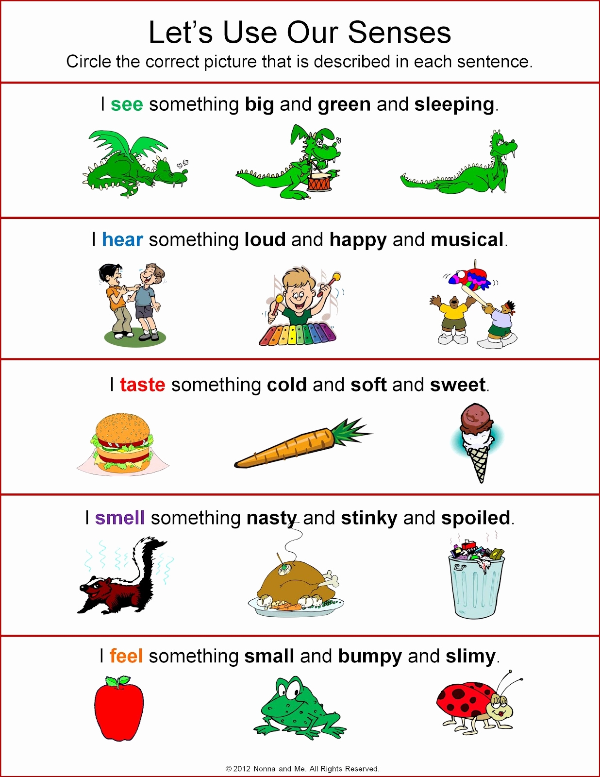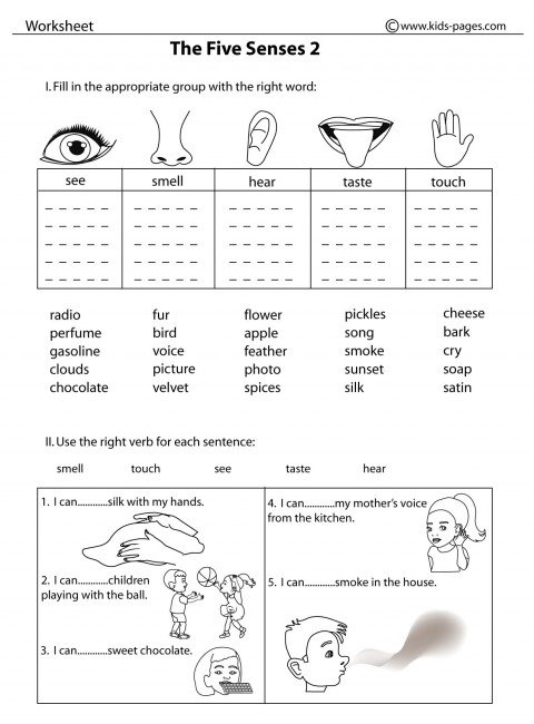 One common activity found in five senses worksheets is matching pictures to the correct sense. For example, students may be asked to match a picture of a flower to the sense of smell or a picture of a guitar to the sense of hearing. This activity helps students make connections between objects and the senses that are used to experience them. It also encourages critical thinking and problem-solving skills as students determine which sense is most closely associated with each picture.