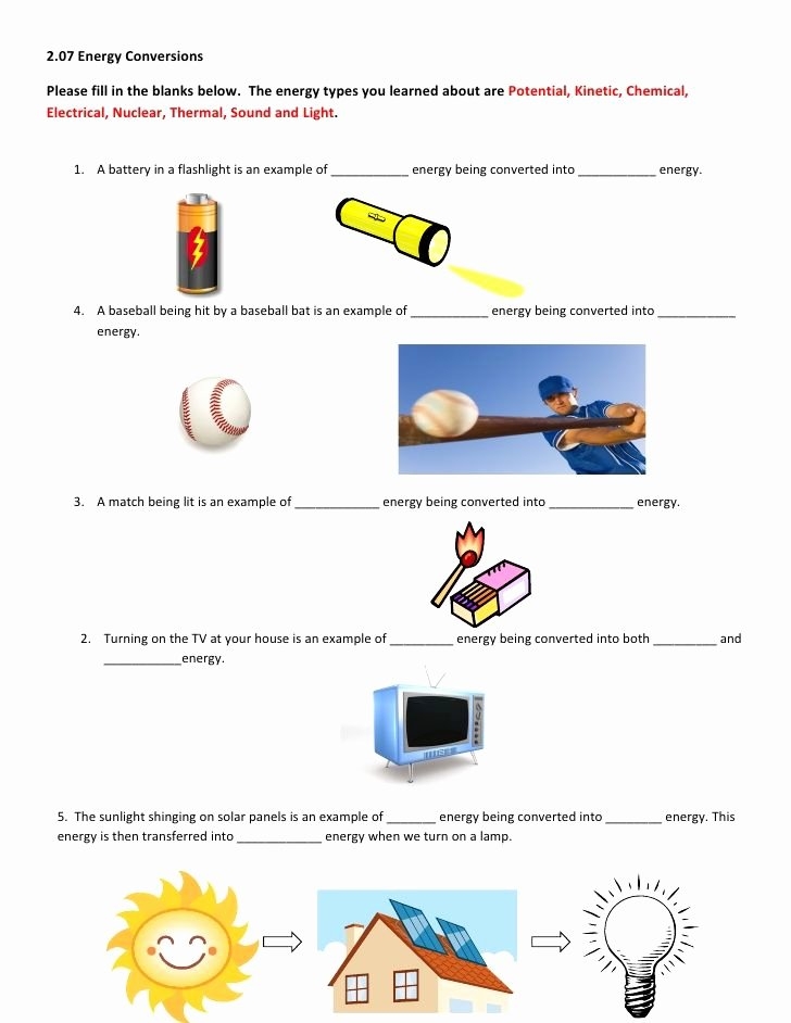 Using a forms of energy worksheet can help students identify examples of each type of energy and understand how they are related. By completing different exercises on the worksheet, students can gain a deeper understanding of the concept of energy and how it is essential for various processes in the world.