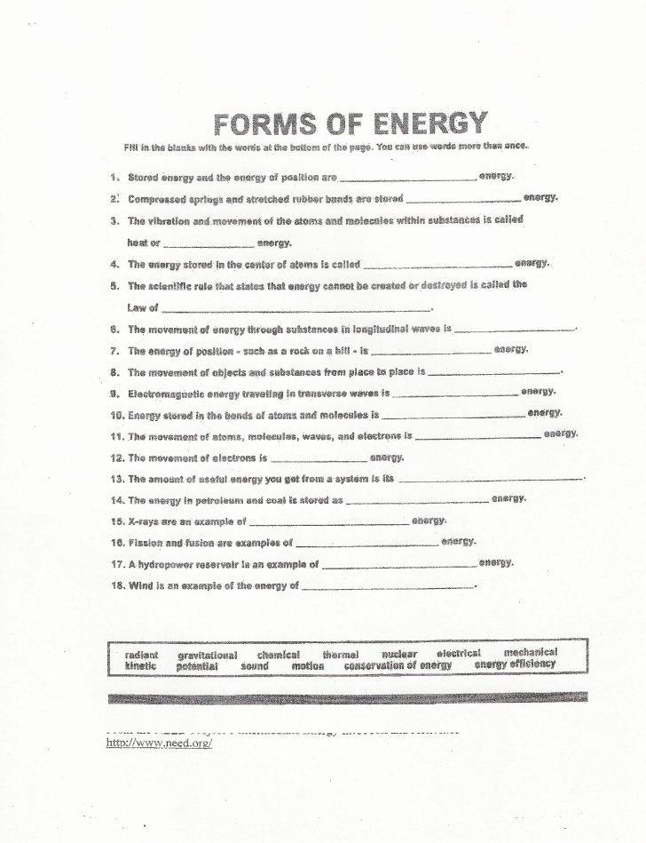 Energy is all around us and comes in many different forms. Understanding the various types of energy is crucial in learning about how the world works. One way to engage students in this topic is through the use of a forms of energy worksheet. This worksheet can help students identify and differentiate between different forms of energy, making the learning process more interactive and engaging.