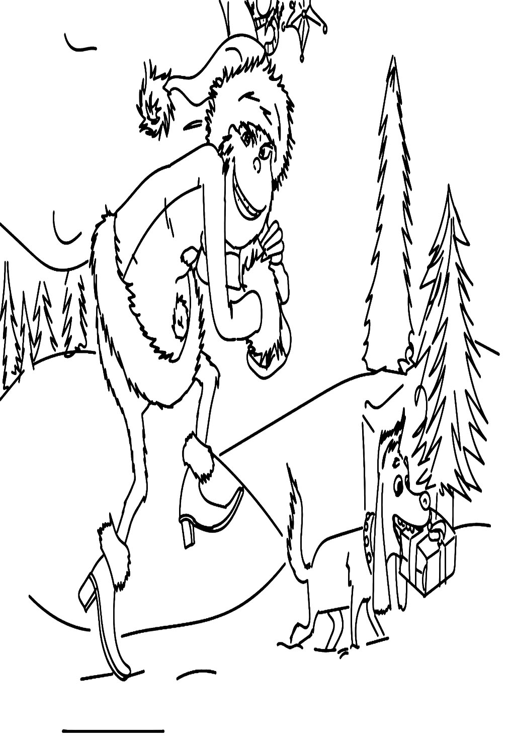 2. Grinch and Max: Join the Grinch and his loyal dog Max on their Christmas adventure with this coloring page. Add some holiday cheer by coloring in their Santa hats and the snowy background.
